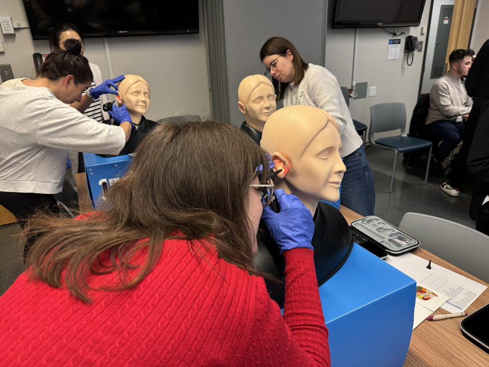 L’enthousiasme des pharmaciennes et pharmaciens avides d’acquérir de nouvelles compétences était palpable. Cette formation a pour but d’évaluer la condition physique et de prescrire la stratégie de traitement appropriée pour une personne atteinte de signes et symptômes reliés au système ORLO en pharmacie. L’accès à des mannequins permet de tester concrètement les méthodes enseignées.