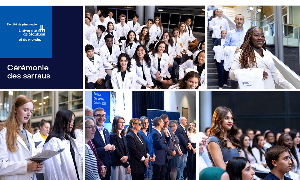 Animée par la vice-doyenne aux études en pharmacie et à la vie étudiante, Nathalie Letarte, et en présence de notre doyen Simon de Denus, du responsable du BSBP Denis deBlois, de la directrice Impact et intelligence d’affaires de Montréal InVivo Alizée Gouronnec, de la responsable du QeP Isabelle Boisclair, de la responsable du Pharm. D. Ema Ferreira et du directeur général de l'OPQ Patrick Boudreault, la cérémonie est un événement annuel permettant d'accueillir ces nouveaux membres de la relève dans la grande famille de la pharmacie.
