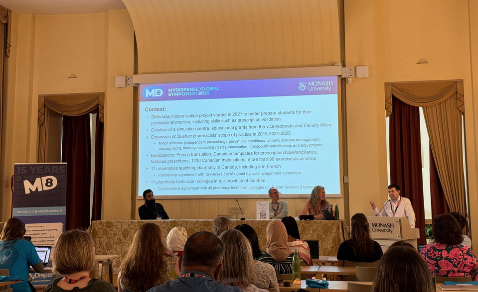 ![]() | Il a été invité à contribuer à un panel animé par la professeure Lisa Holle (University of Connecticut) sur les collaborations interinstitutions, en l’occurrence entre notre faculté et celle de l'Université Laval. Il a également présenté une affiche sur le partenariat instauré par l’UdeM avec les 11 cégeps enseignant le programme de Techniques de pharmacie (TP) au Québec.