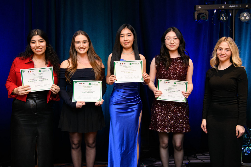 | Christen Ghabbour, Minel Senses, Cathy Xu, Zi Tong Zhao et une représentante de Medisca | Marianne Prud'homme (Liaison FEIP), Carolane Boisvert (UMontréal), Anica Shafiq (University of Toronto) et Mia Hao (ULaval) |
