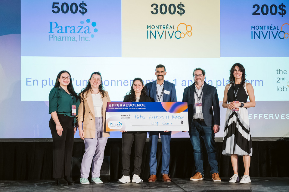 ![]() | L'étudiante au doctorat a présenté le sujet de sa thèse sur le ciblage des cellules souches hématopoïétiques à l’aide de nanoparticules pour la délivrance de thérapie génique. Elle effectue ses travaux sous la direction des professeurs Davide Brambilla et Simon-Pierre Gravel. |